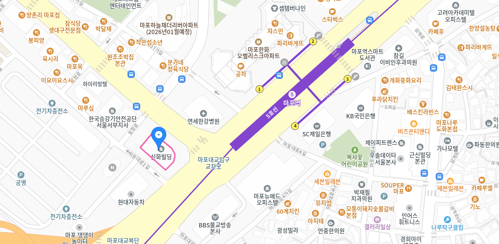 주소 : 서울특별시 마포구 마포대로 19, 10층 1004~8호(마포동, 신화B/D)