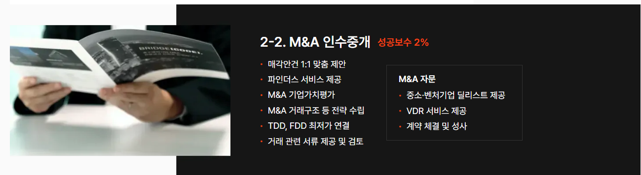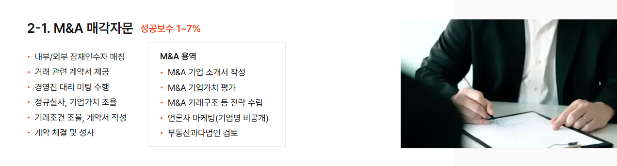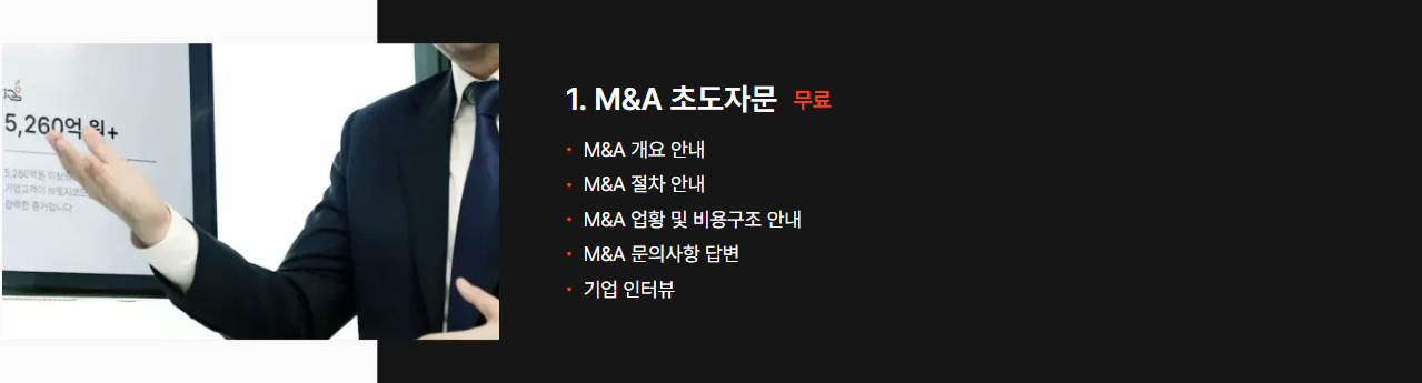 M&A에 필요한 과정은 전부 제공합니다.